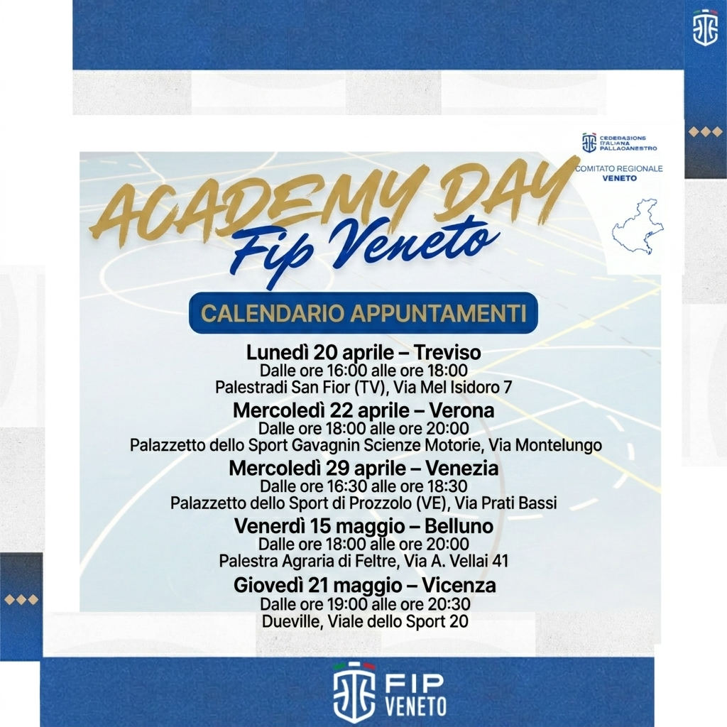 Dalle ore 18:00 alle ore 20:00 presso il Palazzetto dello Sport Gavagnin Scienze Motorie, Via Montelungo