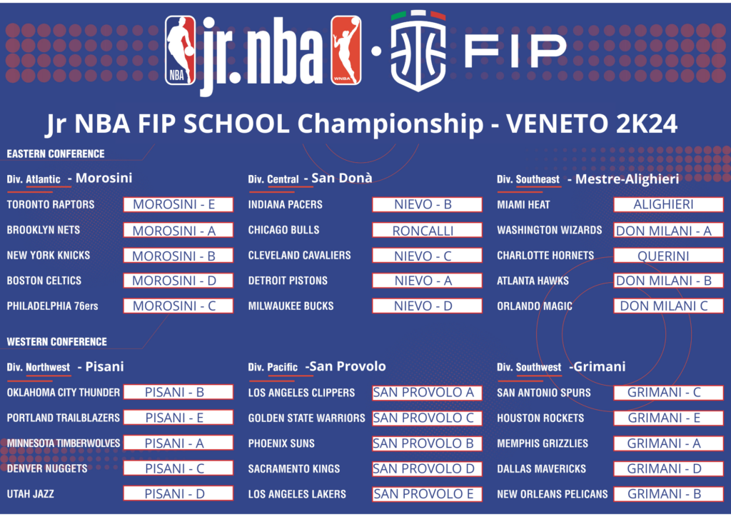 Parteciperanno all’edizione 2024 della Jr. Nba Fip School League le scuole: Morosini, Nievo, Roncalli, Alighieri, Don Milani, Querini, Pisani, San Provolo e Grimani.