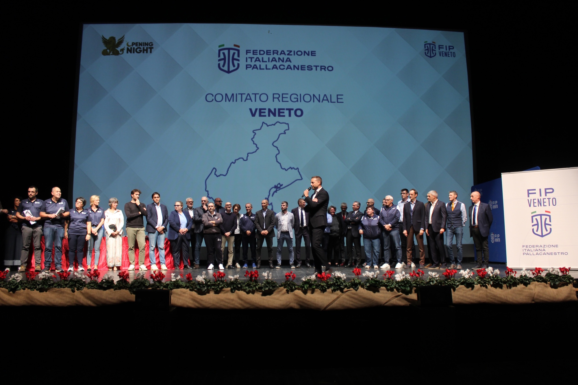 Il Teatro Comunale di Vicenza ha fatto da splendido scenario alla prima edizione dell’“Opening Night” di Fip Veneto, che ha visto la partecipazione di oltre 600 persone tra atleti, atlete, dirigenti, società, arbitri, ufficiali di campo, allenatori, istruttori e tanti appassionati della palla a spicchi.