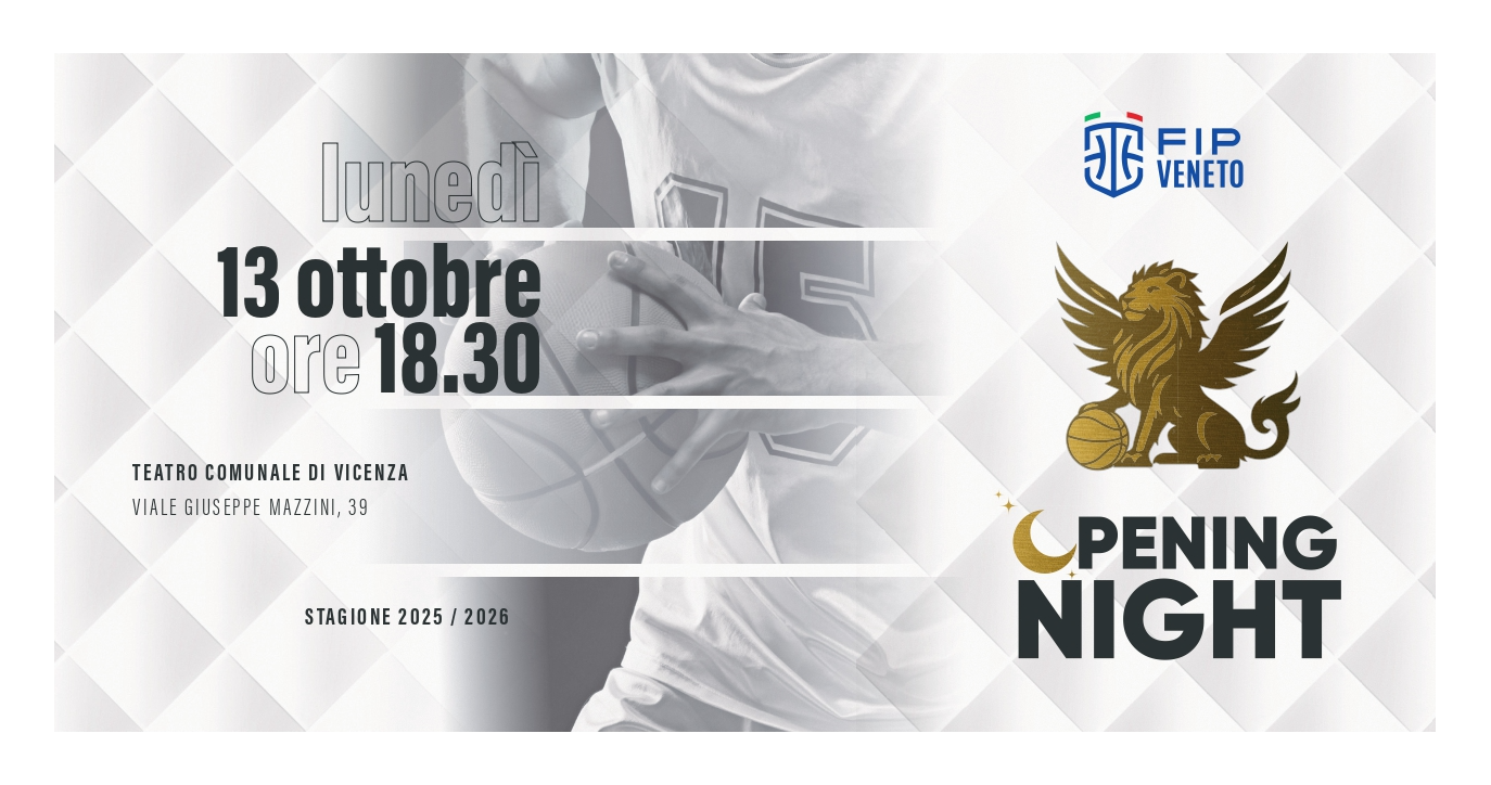 Una serata per celebrare il meglio del basket regionale. Una notte per rivivere le emozioni di un’annata incredibile e di un’estate che ci ha fatto emozionare. Ma soprattutto una “premiere” assoluta per il Comitato regionale Veneto: il 13 ottobre a Vicenza andrà in scena l'”Opening Night” della stagione 2025/2026 di Fip Veneto.